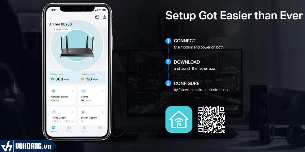 Thiết lập và quản lý mạng chưa bao giờ dễ dàng hơn với ứng dụng Tether của TP-Link, cho phép người dùng dễ dàng cài đặt và quản lý router của mình một cách trực quan. Archer BE230 không chỉ hỗ trợ tất cả các thế hệ Wi-Fi và thiết bị mà còn tương thích với tất cả các nhà cung cấp dịch vụ internet, đảm bảo sự linh hoạt và tiện ích cho người dùng.