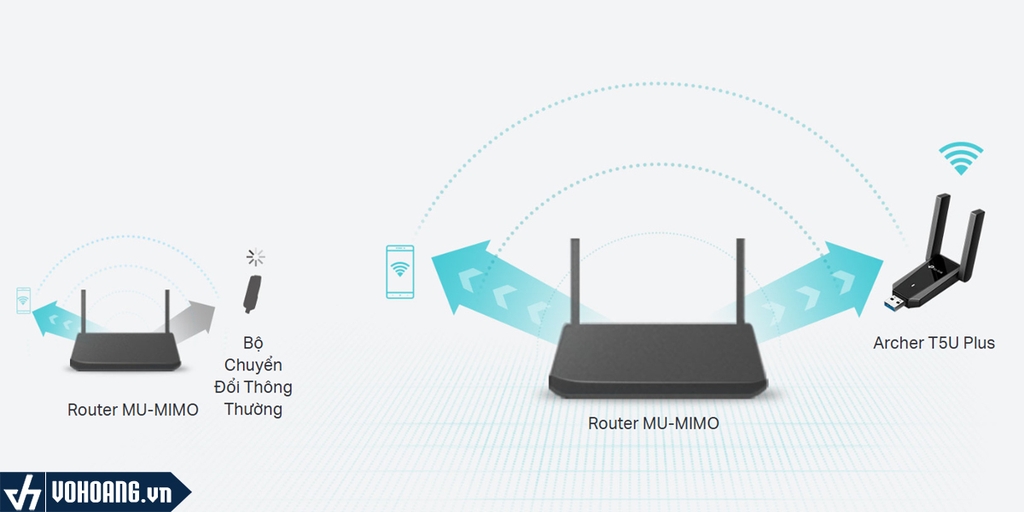 Với công nghệ MU-MIMO, Archer T5U Plus có thể cung cấp hai luồng dữ liệu đồng thời, cải thiện thông lượng và hiệu quả của toàn bộ mạng khi hoạt động với một router MU-MIMO tương thích.