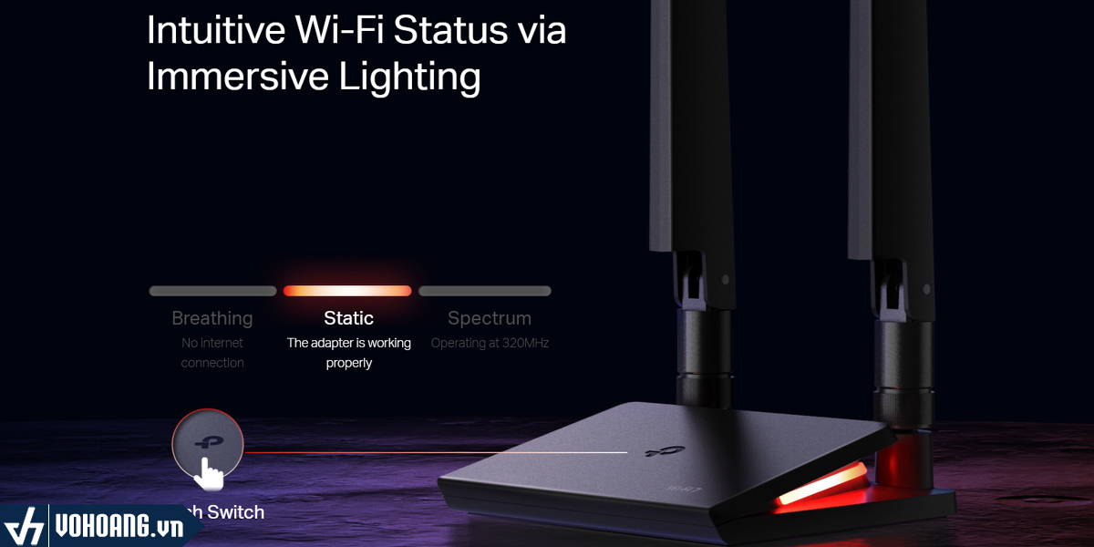 Archer TBE550E không chỉ nổi bật với hiệu ứng ánh sáng LED hấp dẫn mà còn tích hợp một đế thông minh, cung cấp màn hình hiển thị trực quan cho trạng thái mạng. Người dùng có thể dễ dàng tùy chỉnh thông qua công tắc cảm ứng nhạy bén, mang lại trải nghiệm tối ưu và tiện lợi.