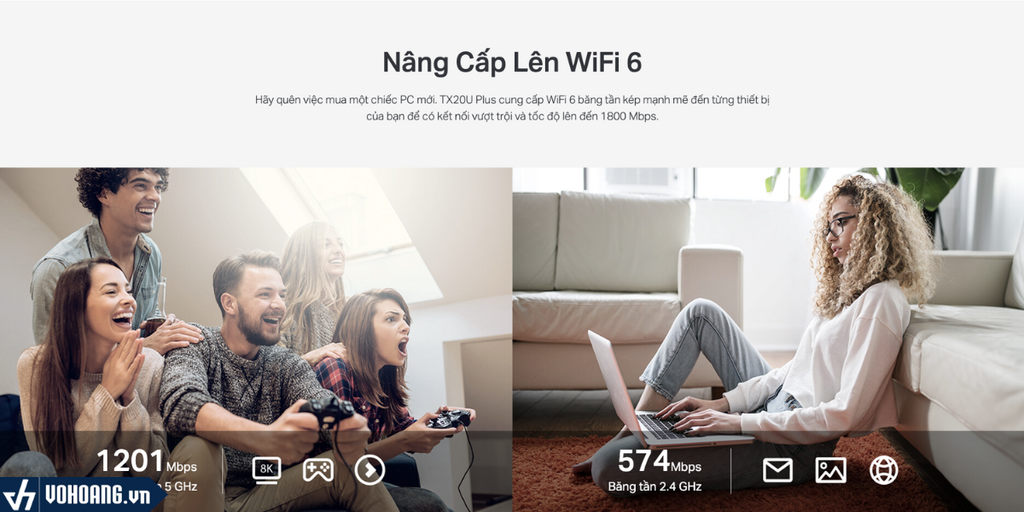 Nâng cấp lên bộ điều hợp không dây Wi-Fi 6 sẽ mang lại lợi ích đầy đủ khi được ghép nối với bộ định tuyến không dây được hỗ trợ Wi-Fi 6. Mặc dù Wi-Fi 6 cung cấp tốc độ tối đa nhanh hơn nhiều, nhưng Wi-Fi 6 sẽ cung cấp tốc độ nhanh hơn nhiều so với Wi-Fi 5 khi bạn ở xa bộ định tuyến nơi tín hiệu yếu hơn.
