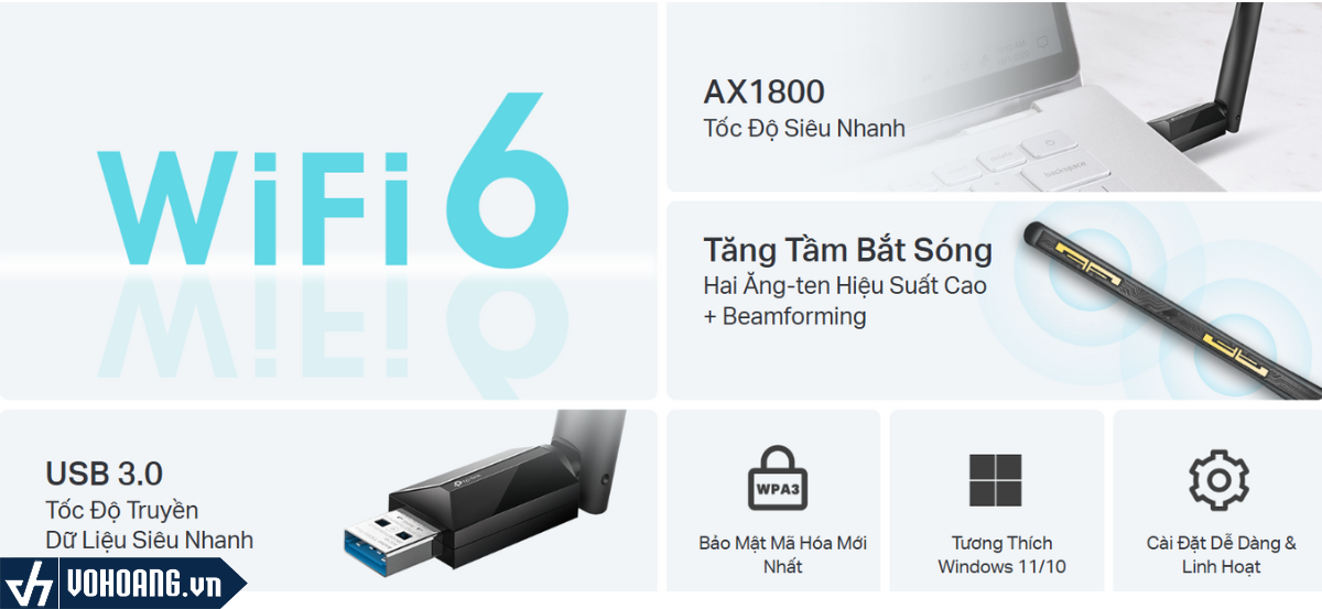 Adapter USB Wi-Fi AX1800 Hiệu Suất Cao