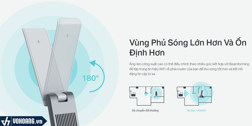 Ăng-ten công suất cao có thể điều chỉnh theo nhiều góc kết hợp với Beamforming để tập trung tín hiệu WiFi về phía router của bạn để thu sóng tốt hơn và kết nối đáng tin cậy từ xa.