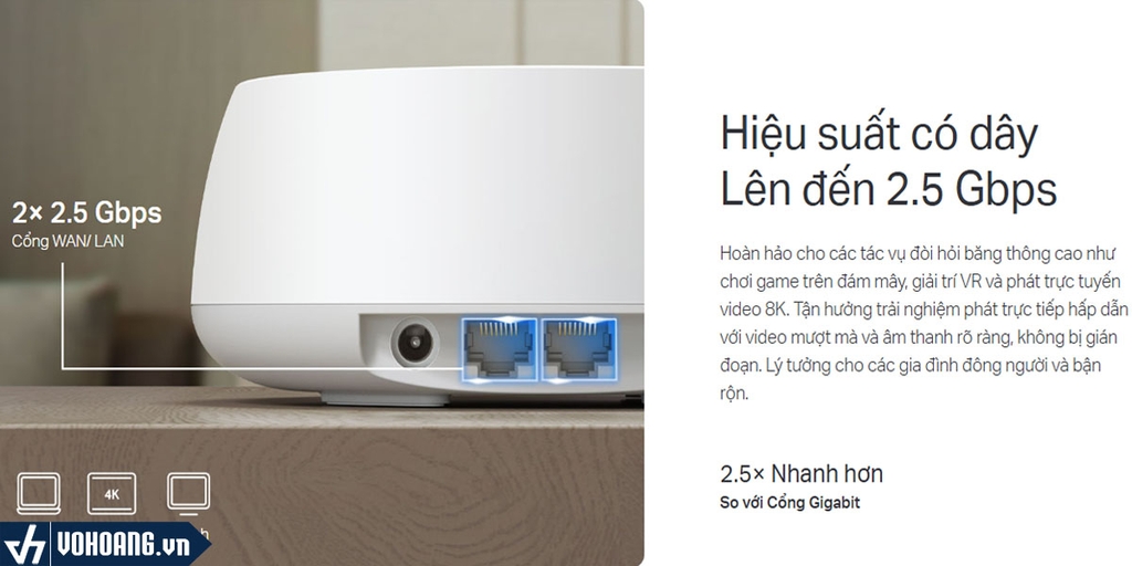 • Kết nối có dây 2.5 Gbps – 2 cổng 2.5 Gbps đảm bảo độ linh hoạt tối đa và tăng cường hiệu suất.