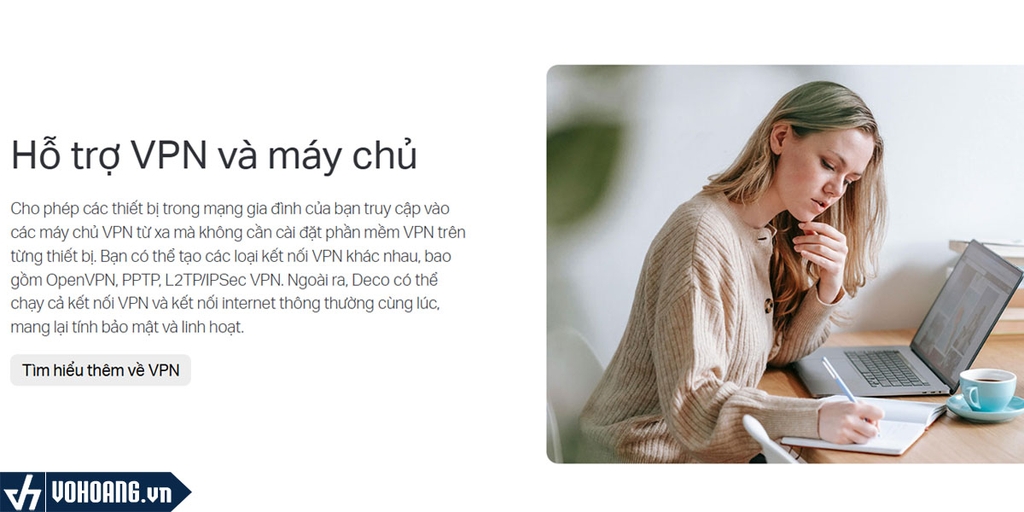 Cho phép các thiết bị trong mạng gia đình của bạn truy cập vào các máy chủ VPN từ xa mà không cần cài đặt phần mềm VPN trên từng thiết bị. Bạn có thể tạo các loại kết nối VPN khác nhau, bao gồm OpenVPN, PPTP, L2TP/IPSec VPN. Ngoài ra, Deco có thể chạy cả kết nối VPN và kết nối internet thông thường cùng lúc, mang lại tính bảo mật và linh hoạt.