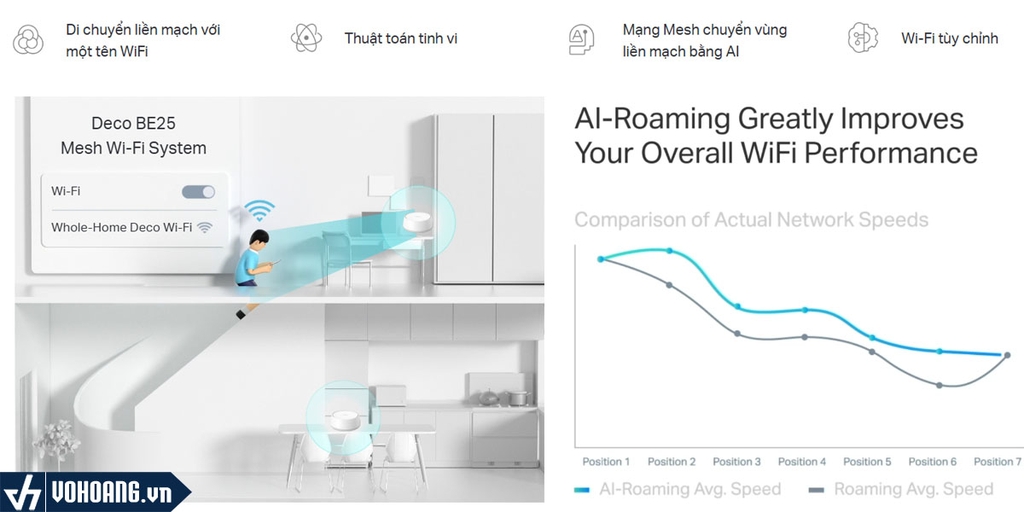 Sóng Wi-Fi không bị gián đoạn khi di chuyển giữa các phòng