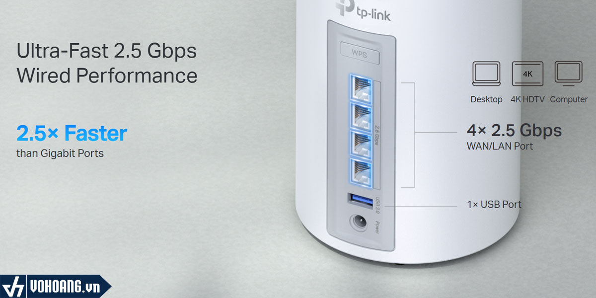 Với bốn cổng 2.5 Gbps, Deco BE63 cung cấp khả năng kết nối có dây nhanh chóng và linh hoạt, đảm bảo rằng bạn có thể tận dụng tối đa tốc độ internet của mình.