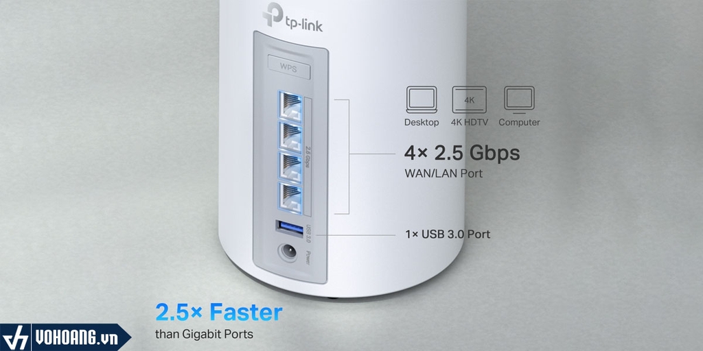 Bốn Cổng 2,5 Gbps tận dụng tối đa tốc độ Gigabit từ ISP cục bộ của bạn. Ngoài ra, Deco BE65 còn trang bị USB để giúp bạn dễ dàng chia sẻ dữ liệu.