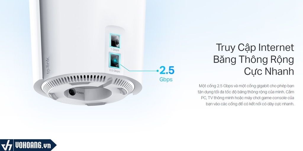 Một cổng 2.5 Gbps và một cổng gigabit cho phép bạn tận dụng tối đa tốc độ băng thông rộng của mình. Cắm PC, TV thông minh hoặc máy chơi game console của bạn vào các cổng để có kết nối có dây cực nhanh.