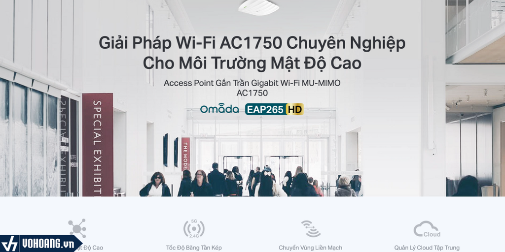 Tp-Link EAP265 HD là điểm truy cập wifi hỗ trợ cấp nguồn PoE passive chuẩn 802.3af nhỏ gọn thuận tiện cho việc triển khai lắp đặt những khu vực yêu cầu tính phẩm mỹ cao, cho phép kết nối đồng thời nhiều thiết bị tích hợp tính mạng marketing thông qua tính năng Cloud Omada trên nền tảng sóng wifi băng tần kép MU-MIMO chuẩn AC1750 cho hiệu suất truyền dữ liệu vượt trội đem đến trải nghiệm tuyệt vời đến người sử dụng.