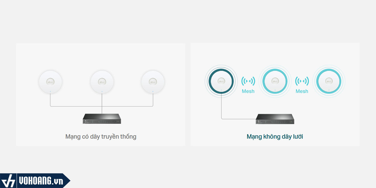 Công nghệ Mesh được tích hợp trong các sản phẩm Omada EAP cho phép mở rộng tín hiệu WiFi mà không yêu cầu dây cáp, mang lại giải pháp kết nối linh hoạt và hiệu quả cho các khu vực mà dây cáp thông thường không thể đạt được. Đây là một bước tiến quan trọng trong việc cung cấp kết nối không dây ổn định và mạnh mẽ.