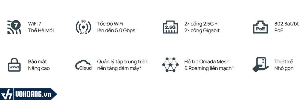 | Sản phẩm bao gồm | • Điểm truy cập Wi-Fi 7 EAP725-Wall BE5000 • Hướng dẫn cài đặt • Bộ lắp đặt |