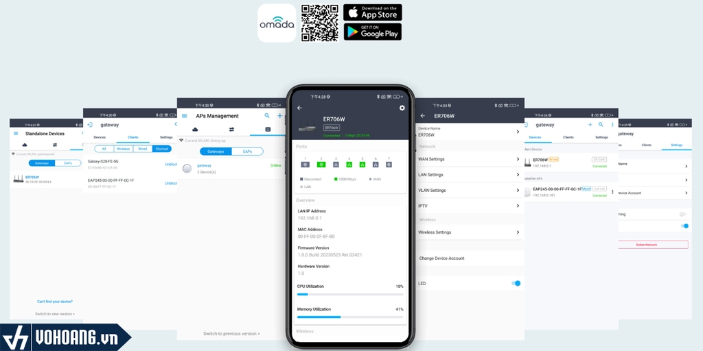 Người dùng có thể cấu hình ER706W ở cả chế độ độc lập và chế độ điều khiển thông qua ứng dụng Omada. Quản lý độc lập đảm bảo sự tiện lợi tối đa. Không cần thiết lập thêm bộ điều khiển.
