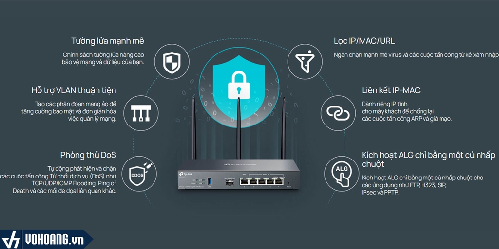 Kích hoạt ALG chỉ bằng một cú nhấp chuột: Kích hoạt ALG chỉ bằng một cú nhấp chuột cho các ứng dụng như FTP, H323, SIP, IPsec và PPTP.