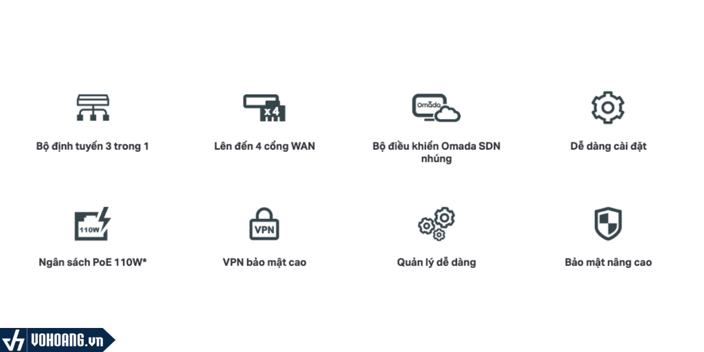 | Cổng kết nối | • 2 cổng WAN/LAN SFP Gigabit • 1 cổng WAN Gigabit • 1 cổng LAN/WAN Gigabit • 8 cổng LAN PoE+ Gigabit |
