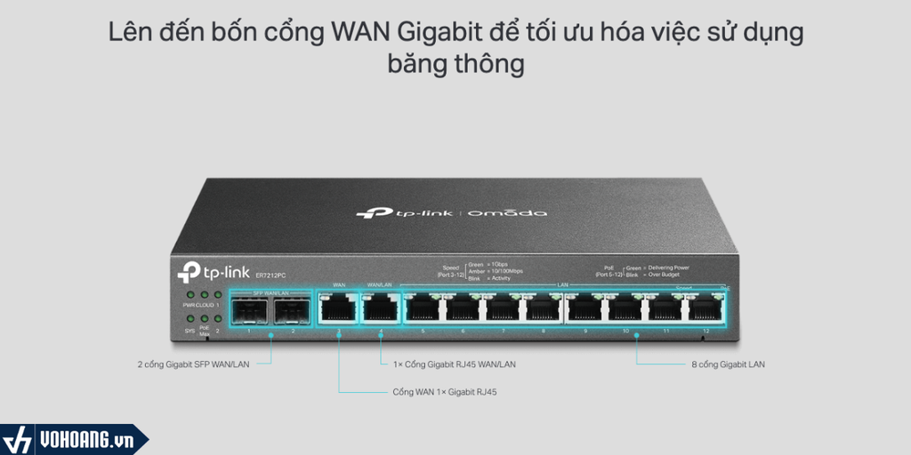 Được trang bị nhiều cổng, ER7212PC đáp ứng các yêu cầu truy cập internet khác nhau thông qua một thiết bị. Chức năng Cân bằng tải đa mạng WAN phân phối các luồng dữ liệu theo tỷ lệ băng thông của mỗi cổng WAN để nâng cao tỷ lệ sử dụng băng thông rộng nhiều đường.