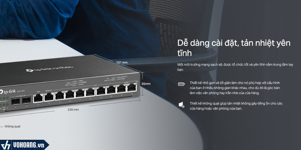 Với thiết kế nhỏ gọn, người dùng có thể thay thế router, hardware controller và switch PoE+. Giờ đây bạn không cần phải cấu hình thủ công từng thiết bị mạng khác nhau. Bạn có thể triển khai thống nhất qua ER7212PC.