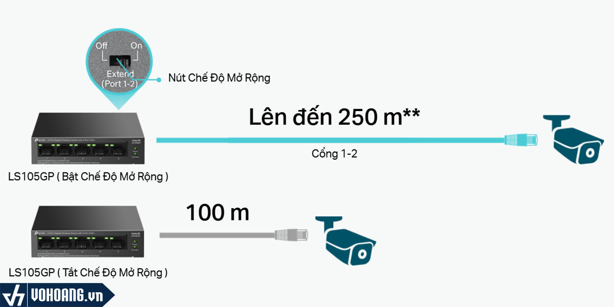 LS105GP là khả năng truyền PoE lên tới 250m, mở rộng phạm vi sử dụng và tối ưu hóa việc triển khai camera giám sát trong các khu vực rộng lớn.