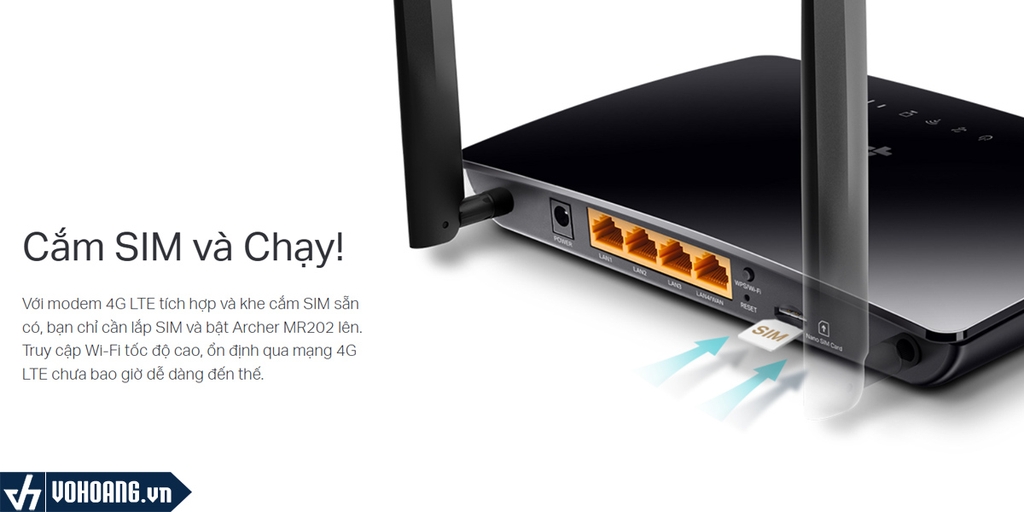 - Với modem 4G LTE tích hợp và khe cắm thẻ SIM, bạn chỉ cần gắn thẻ SIM và mở nguồn Archer MR202. Như vậy, thật nhanh chóng để tận hưởng tốc độ, tính ổn định, trải nghiệm tuyệt vời mà công nghệ mạng 4G LTE mang lại một cách dễ dàng.