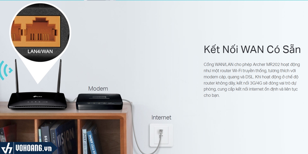 Với Cổng WAN/LAN đầy đủ chức năng, Archer MR202 cũng có thể hoạt động như một router tương thích với cáp, cáp quang và modem DSL. Chiến lược sao lưu dự phòng WAN và 3G/4G giữ kết nối internet ổn định. Archer MR202 có thể kết nối bạn với Internet, bất kể bạn ở trong hoàn cảnh nào.