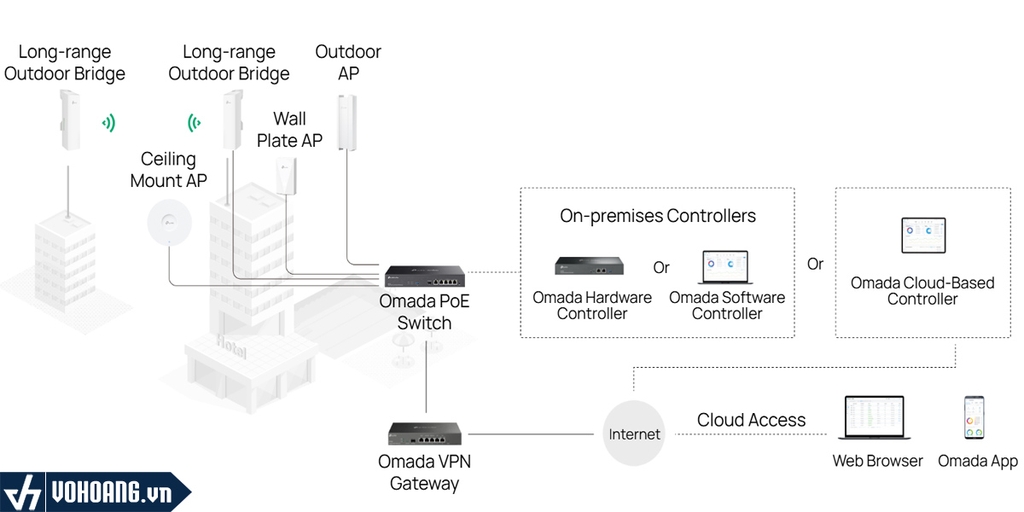 Quản lý từ xa các điểm truy cập, bộ chuyển mạch và cổng kết nối trên nhiều địa điểm, tất cả chỉ từ một giao diện duy nhất.