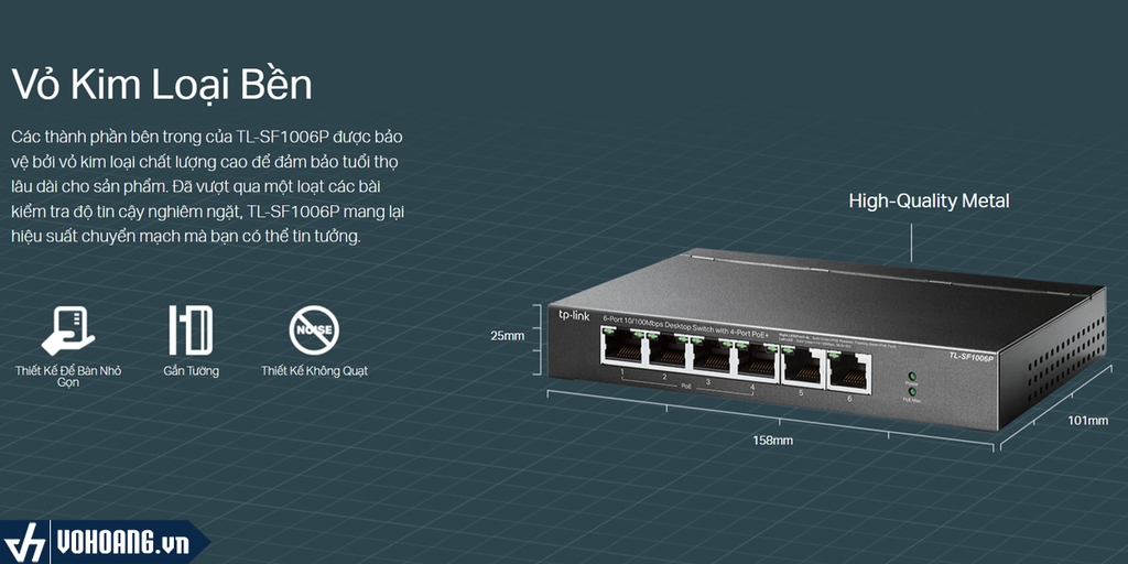 Các thành phần bên trong của TL-SF1006P được bảo vệ bởi vỏ kim loại chất lượng cao để đảm bảo tuổi thọ lâu dài cho sản phẩm. Đã vượt qua một loạt các bài kiểm tra độ tin cậy nghiêm ngặt, TL-SF1006P mang lại hiệu suất chuyển mạch mà bạn có thể tin tưởng.