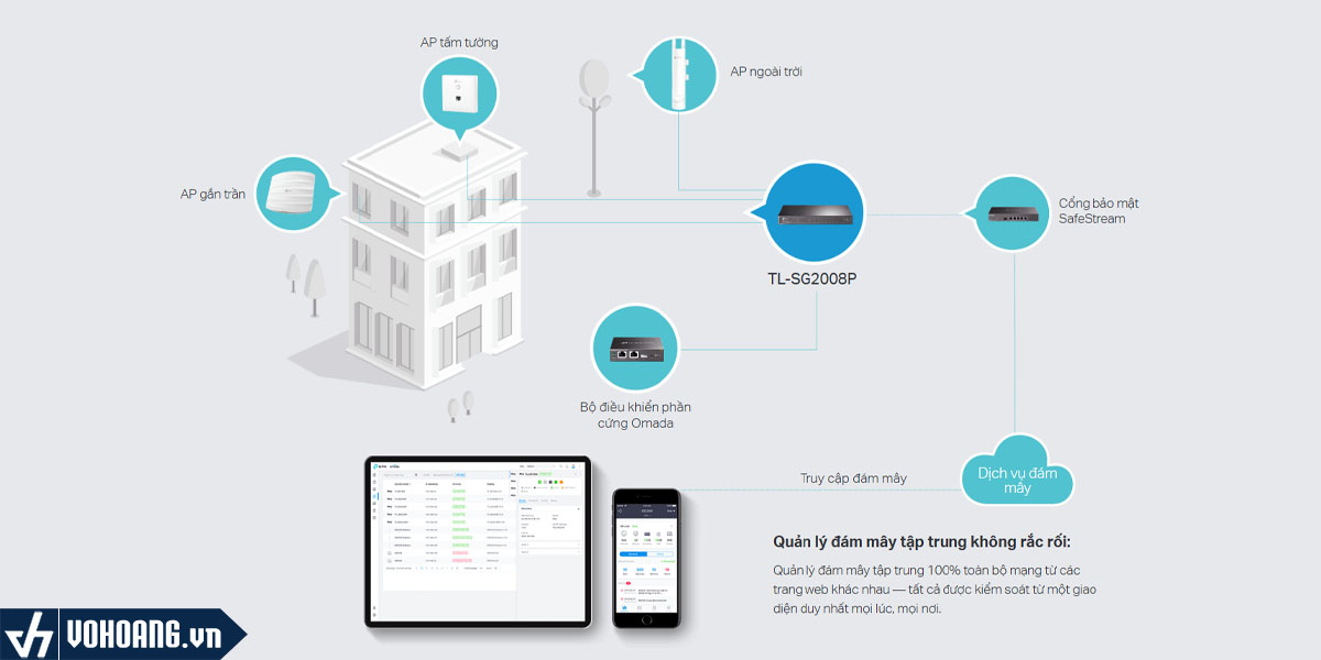 Nền tảng SDN của Omada tích hợp các thiết bị mạng bao gồm điểm truy cập, switch và router, cung cấp khả năng quản lý đám mây tập trung hoàn toàn từ một giao diện duy nhất. Hệ thống này cho phép xây dựng một mạng lưới có khả năng mở rộng cao, đồng thời đảm bảo kết nối mạng có dây và không dây liền mạch, thích hợp với đa dạng môi trường từ khách sạn, trường học, cửa hàng bán lẻ, đến văn phòng và nhiều hơn nữa.