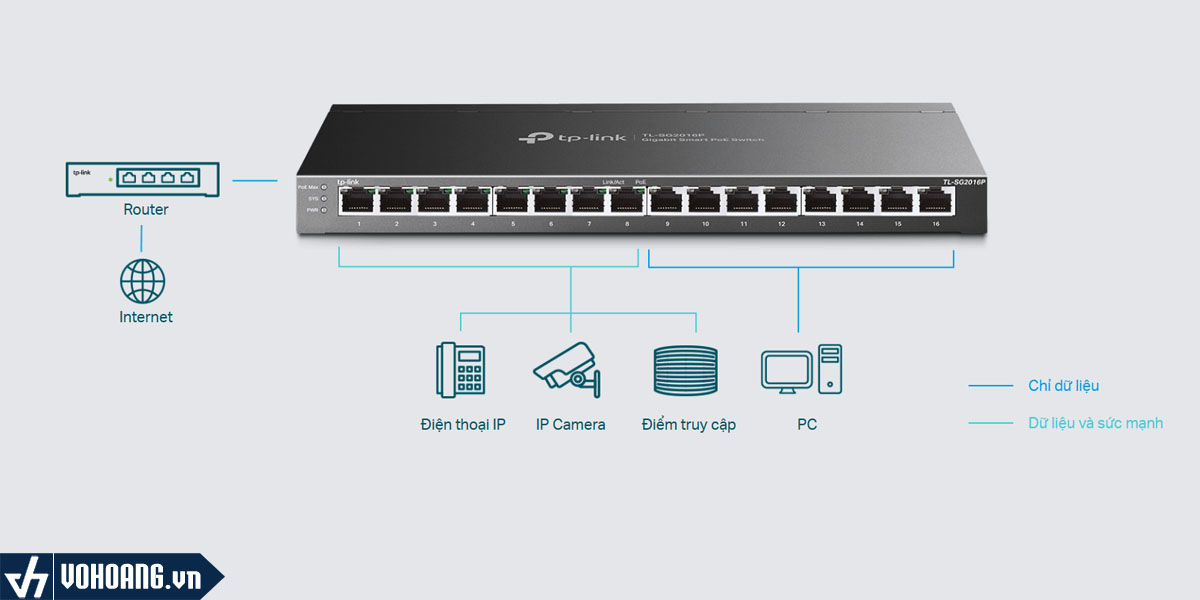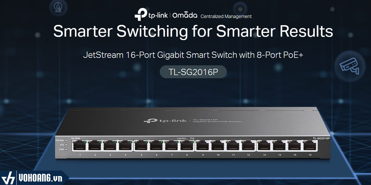 Tp-Link SG2016P có 8 cổng PoE+ tuân thủ chuẩn 802.3af/at, với tổng nguồn PoE tổng cộng lên đến 120 W. Thiết kế này cho phép sử dụng một cáp Ethernet duy nhất vừa cho dữ liệu vừa cho nguồn điện, mang lại khả năng triển khai linh hoạt cho các thiết bị PoE như điểm truy cập không dây, camera IP và điện thoại IP, giúp tiết kiệm chi phí cơ sở hạ tầng cho doanh nghiệp nhỏ.