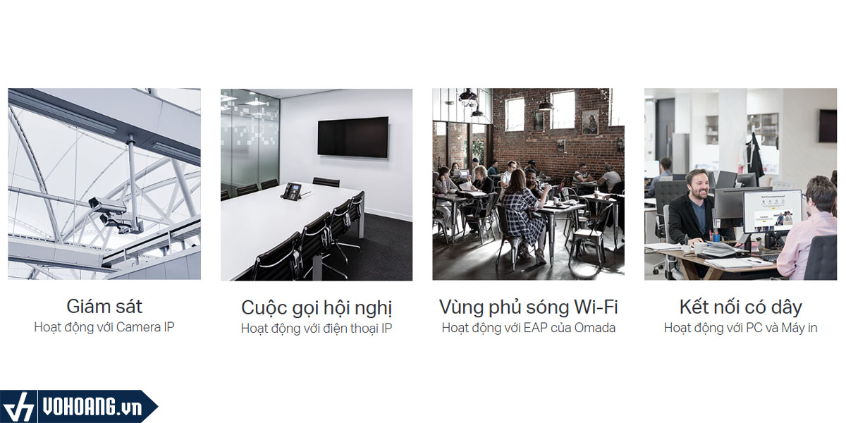 Tp-Link SG2016P đảm bảo sự tương thích hoàn hảo với các thiết bị hỗ trợ PoE như camera IP, điểm truy cập không dây và điện thoại IP. Ngoài ra, thiết bị này cũng cung cấp kết nối gigabit cho các thiết bị không hỗ trợ PoE như máy tính, máy in và hệ thống IPTV, đảm bảo hiệu suất cao và ổn định cho cả hệ thống mạng của bạn.