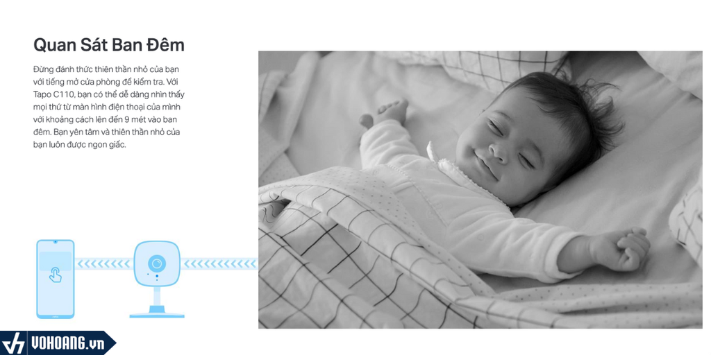 Tapo C110 là Camera hỗ trợ tốt nhất cho trẻ nhỏ. Đừng đánh thức thiên thần nhỏ của bạn với tiếng mở cửa phòng để kiểm tra. Với Tapo C110, bạn có thể dễ dàng nhìn thấy mọi thứ từ màn hình điện thoại của mình với khoảng cách lên đến 9 mét vào ban đêm. Bạn yên tâm và thiên thần nhỏ của bạn luôn được ngon giấc. Quan sát ban đêm tốt hơn nhờ đèn hồng ngoại 850nm có thể nhìn thấy hỉnh ảnh ở khoảng cách lên đến 30ft hỗ trợ bộ lọc chuyển đổi màu tự động trong điều kiện ánh sáng yếu cho hình ảnh chân thật và rõ nét nhất.
