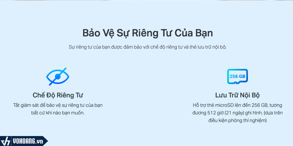 Hỗ trợ thẻ microSD lên đến 256 GB, tương đương 512 giờ (21 ngày) ghi hình. (dựa trên điều kiện phòng thí nghiệm)