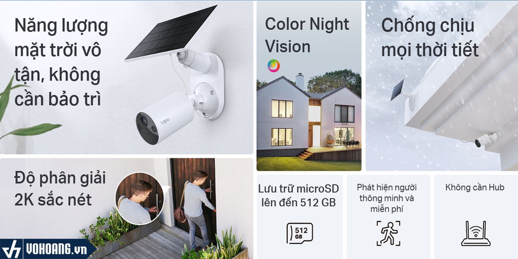 Tapo C410KIT là bộ giải pháp camera wifi không sử dụng tấm pin năng lượng mặt trời để hoạt động giúp giải đáp bài toán khó khăn trong việc kéo đường dây điện trực tiếp. Chất lượng hình ảnh 2K(2304x1296px) vô cùng sắc nét và chi tiết kết hợp với 2 đèn led trợ sáng hai bên ống kính giúp xem và ghi hình có màu cả ngày lẫn đêm.