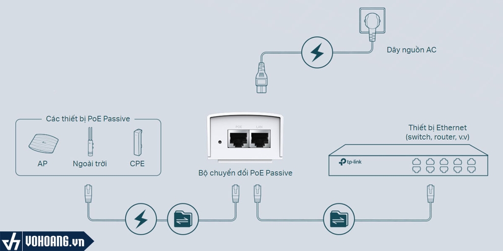 Là dòng sản phẩm PoE chuyên dụng cho phép truyền điện áp lên đến 48V thông qua dây mạng thường được sử dụng cấp nguồn cho các thiết bị có chuẩn PoE Pasive như AccessPoint (AP), CPE, các thiết bị ngoài trời