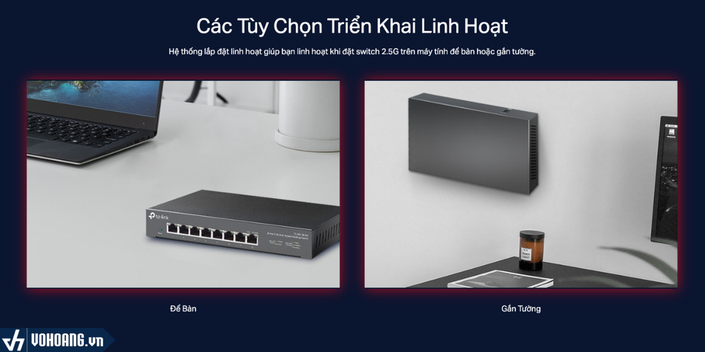 Với thiết kế nhỏ gọn, bạn có thể dễ dàng lắp đặt TL-SG105-M2 2.5G gắn tường hoặc để bàn.