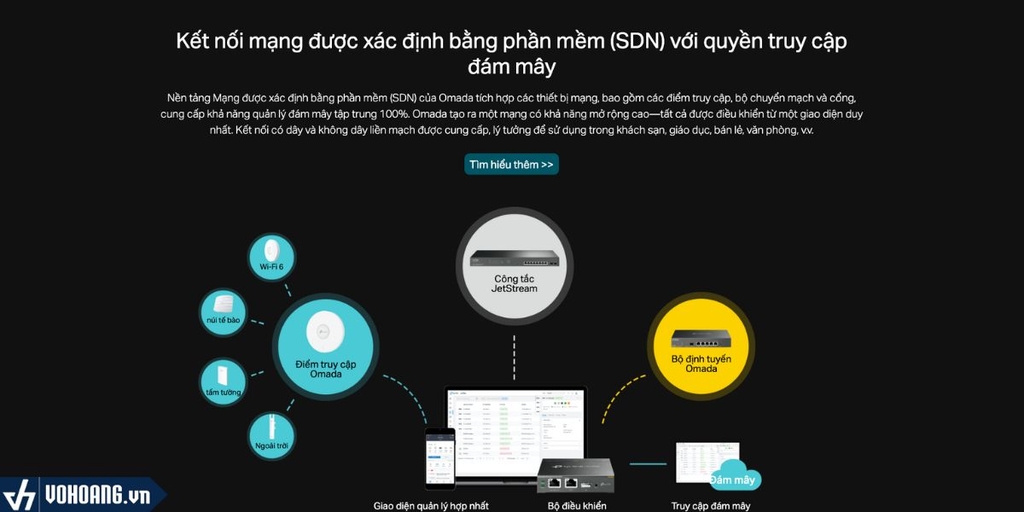 Nền tảng Mạng được xác định bằng phần mềm (SDN) của Omada tích hợp các thiết bị mạng, bao gồm các điểm truy cập, bộ chuyển mạch và cổng, cung cấp khả năng quản lý đám mây tập trung 100%. Omada tạo ra một mạng có khả năng mở rộng cao—tất cả được điều khiển từ một giao diện duy nhất. Kết nối có dây và không dây liền mạch được cung cấp, lý tưởng để sử dụng trong khách sạn, giáo dục, bán lẻ, văn phòng, v.v.