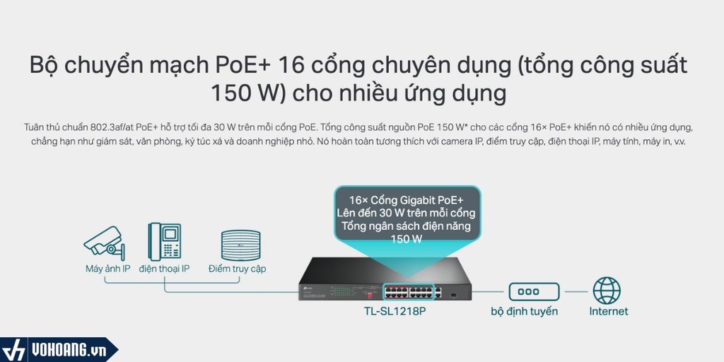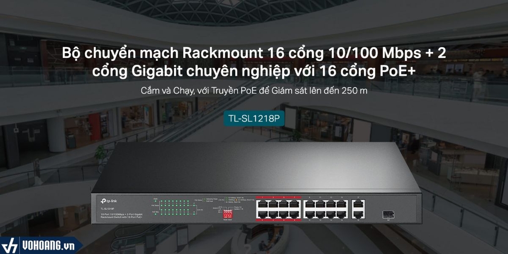 Bộ chuyển mạch PoE+ 16 cổng TL-SL1218P chuyên dụng