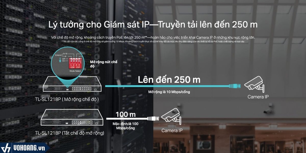 Với chế độ mở rộng, khoảng cách truyền PoE lên đến 250 m (**) – hoàn hảo cho việc triển khai Camera IP ở các khu vực rộng lớn.