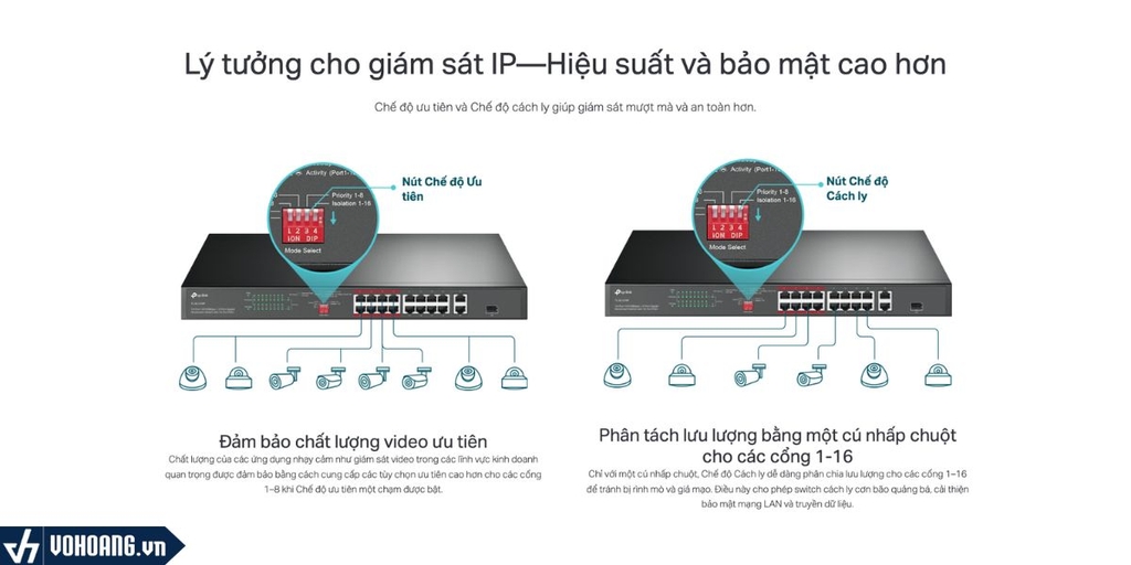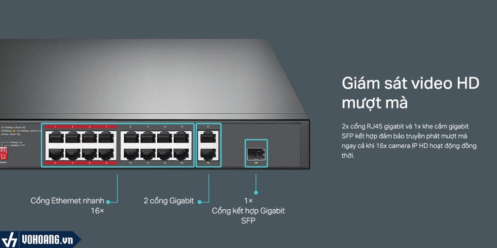 Cổng RJ45 2 × gigabit và khe cắm SFP 1 × gigabit kết hợp đảm bảo truyền phát bóng mượt ngay cả khi camera IP 16 × HD hoạt động đồng thời.