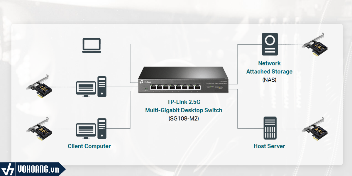 Đối với các kết nối cục bộ, Card mạng PCIe 2.5G giúp xây dựng một kênh truyền tải cực nhanh giữa thiết bị lưu trữ trung tâm và các máy tính khác trong mạng nội bộ của bạn. Việc truyền dữ liệu cục bộ sẽ trở nên dễ dàng hơn khi bạn xử lý các tác vụ yêu cầu băng thông cao tại nhà hoặc văn phòng.
