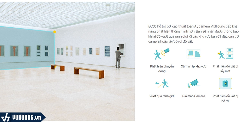 TP-Link VIGI C430I còn giúp nhận dạng thông minh, có thể phát hiện chuyển động, khu vực cấm xâm nhập, tránh camera giả mạo...