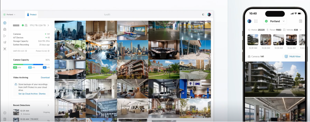 Dòng camera G6 hoạt động mượt mà với các Access Point UniFi, UniFi Dream Machine, giúp quản lý đồng bộ trên một nền tảng duy nhất. Người dùng có thể kiểm soát toàn bộ hệ thống camera, Wi-Fi và bảo mật từ một giao diện trực quan, dễ sử dụng.