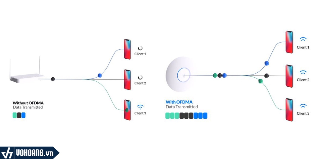 Với OFDMA, các điểm truy cập Wi-Fi 6 không chỉ cung cấp các gói dữ liệu có dung lượng lớn hơn mà còn phân tích tự lên kế hoạch truyền gói tin và cung cấp dữ liệu đến nhiều thiết bị đồng thời, cải thiện đáng kể tốc độ tải lên và tải xuống. Giảm độ trễ xuống mức thấp nhất cho các tác vụ sử dụng ít dữ liệu.