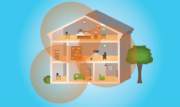 Do đó, việc đặt router ở vị trí trung tâm trong căn nhà là lựa chọn thuận tiện nhất. Bạn sẽ không cần quan tâm đến vị trí của máy tính và modem trong nhà nữa. Nếu nhà của bạn có nhiều tầng, hãy cố gắng chọn vị trí ở giữa hai tầng. Khi đặt thiết bị ở trung tâm nhà, sóng wifi sẽ lan tỏa đều khắp không gian như hình vẽ.