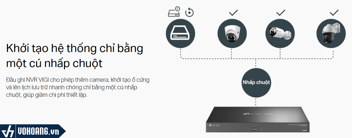 Đầu ghi NVR VIGI cho phép thêm camera, khởi tạo ổ cứng và lên lịch lưu trữ nhanh chóng chỉ bằng một cú nhấp chuột, giúp giảm chi phí thiết lập.